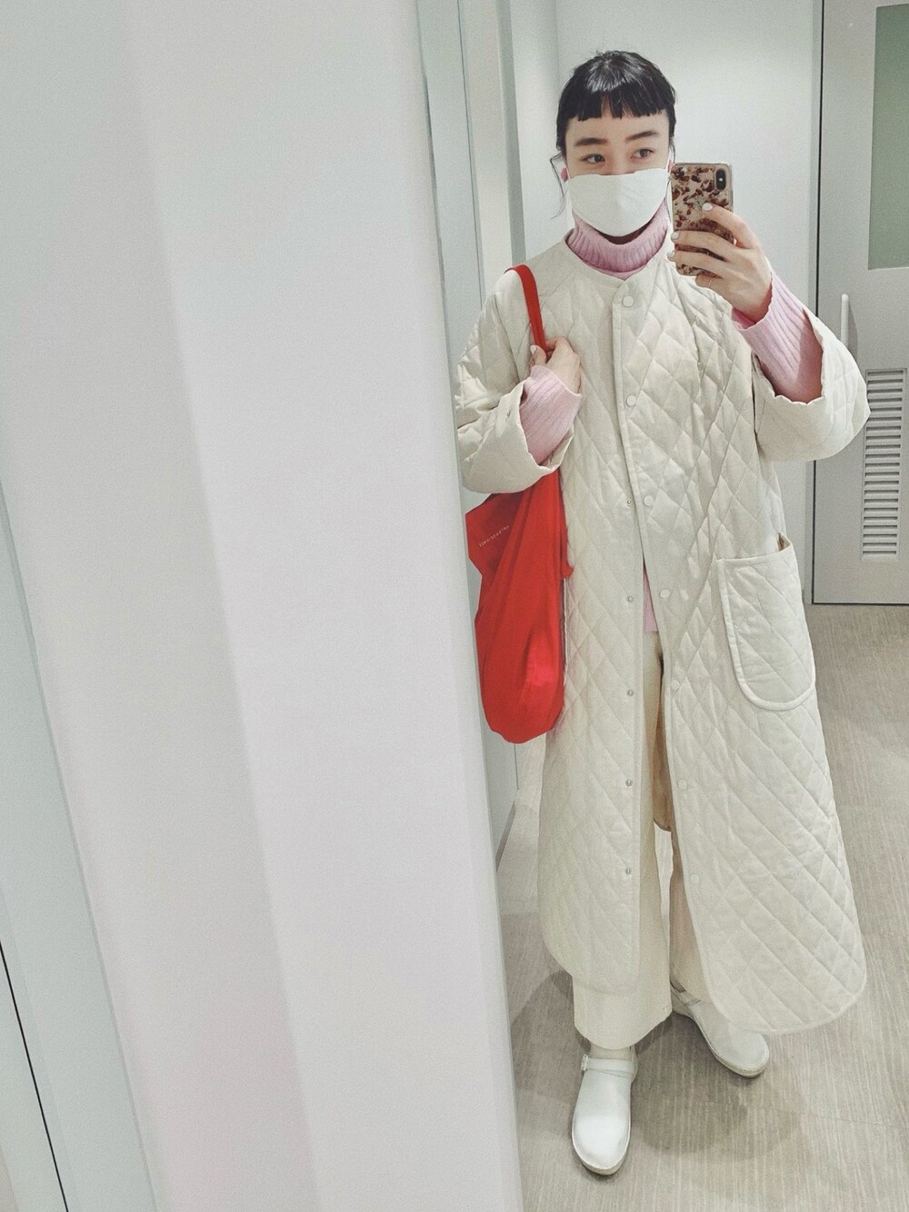 ピンク好きの子に会う日は、 私もピンクを🎀🎀🎀 ピンクのニットに、 ピンクのイヤリング。 真っ赤なトートを合わせて🤝