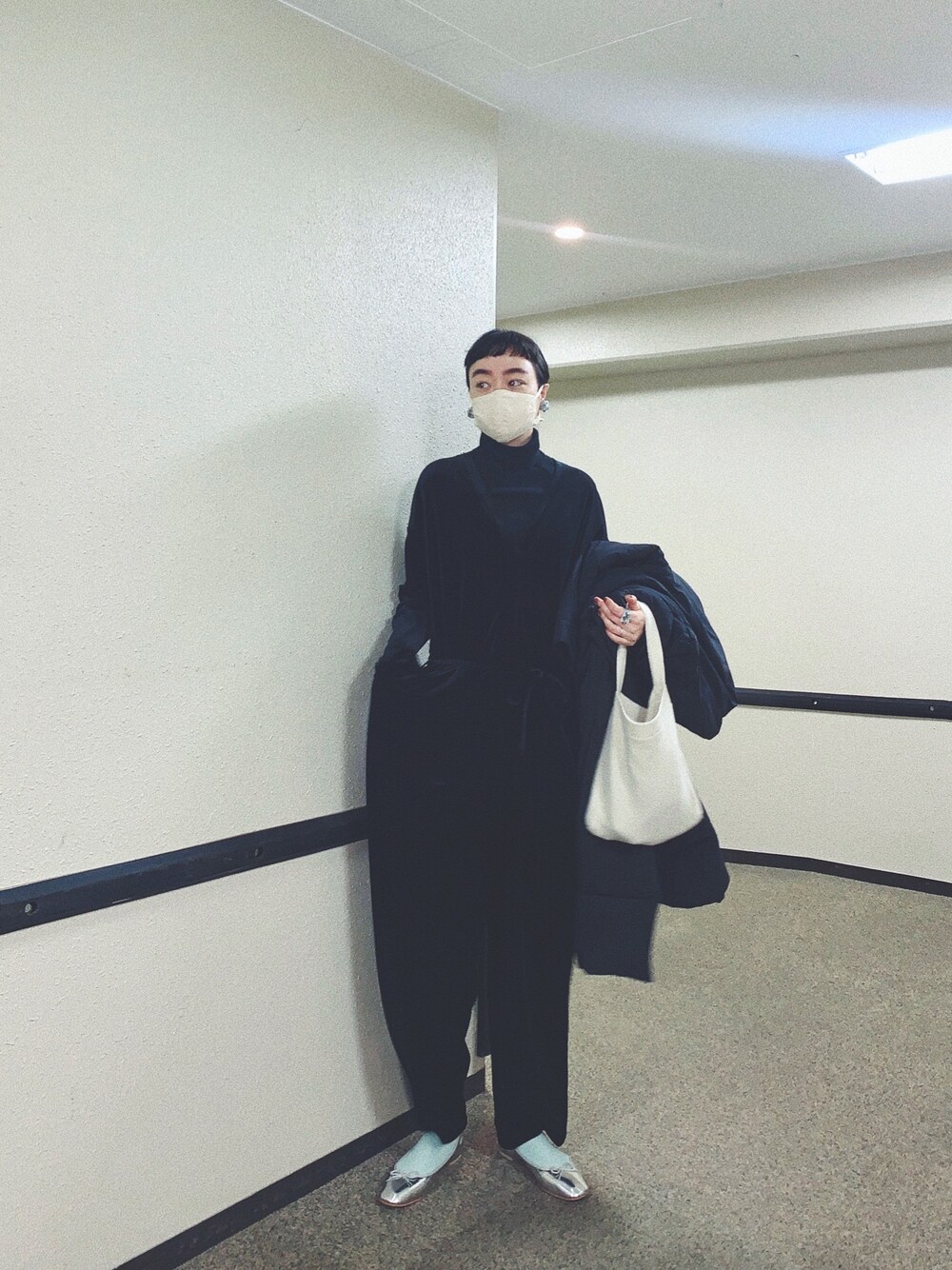 ベロアのオールインワン。 ミントグリーンのソックスに合う、 designsixのアクセサリー。 シルバーのバレエシューズ、 モヘアの靴下と合わせれば冬もいけるなぁ😍
