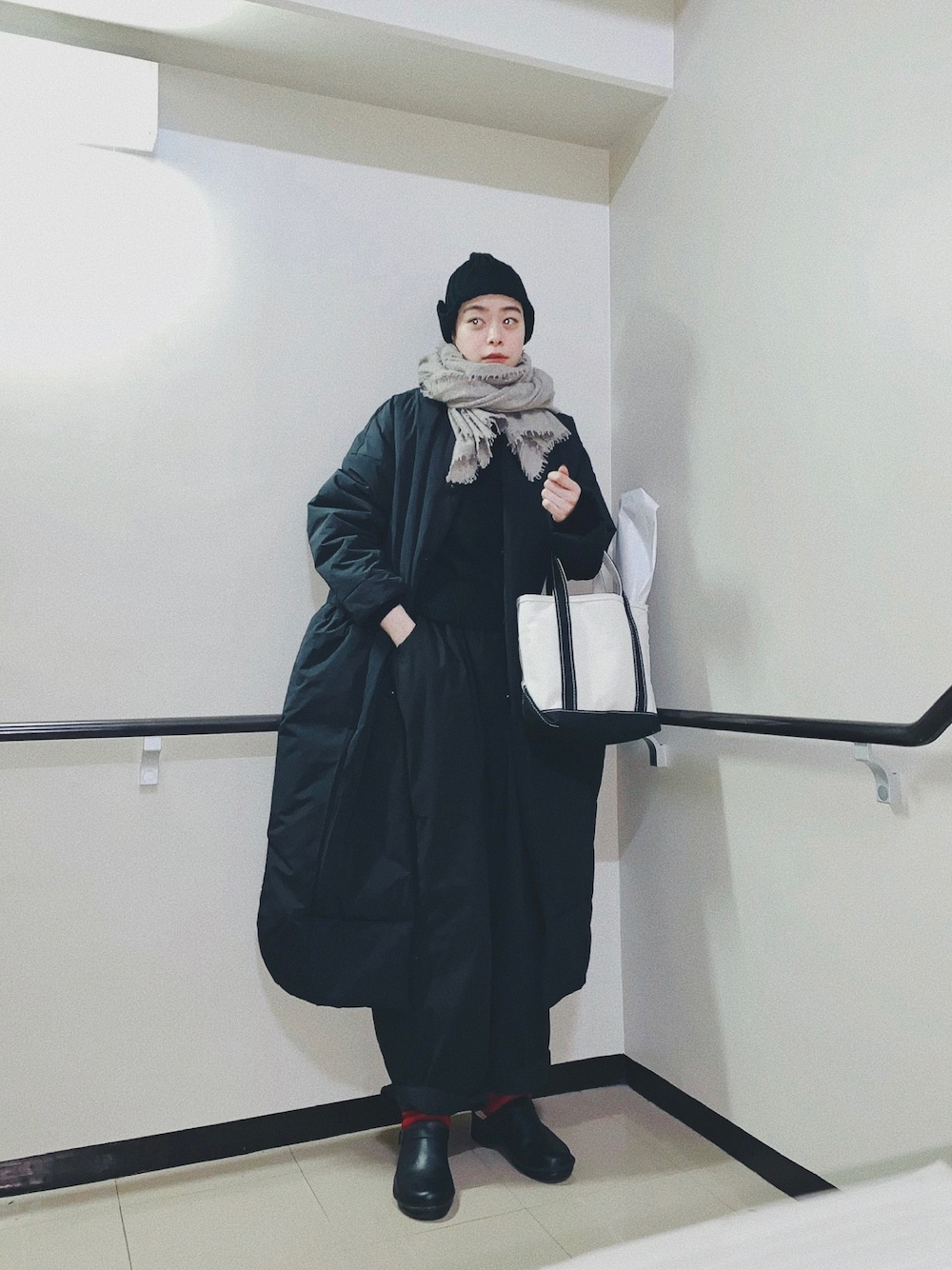 今日は朝早くから長丁場な撮影だったので、 防寒対策バッチリです⛄️⛄️⛄️ トートバッグに入ってるのは、 小道具で使ったバゲット🥖