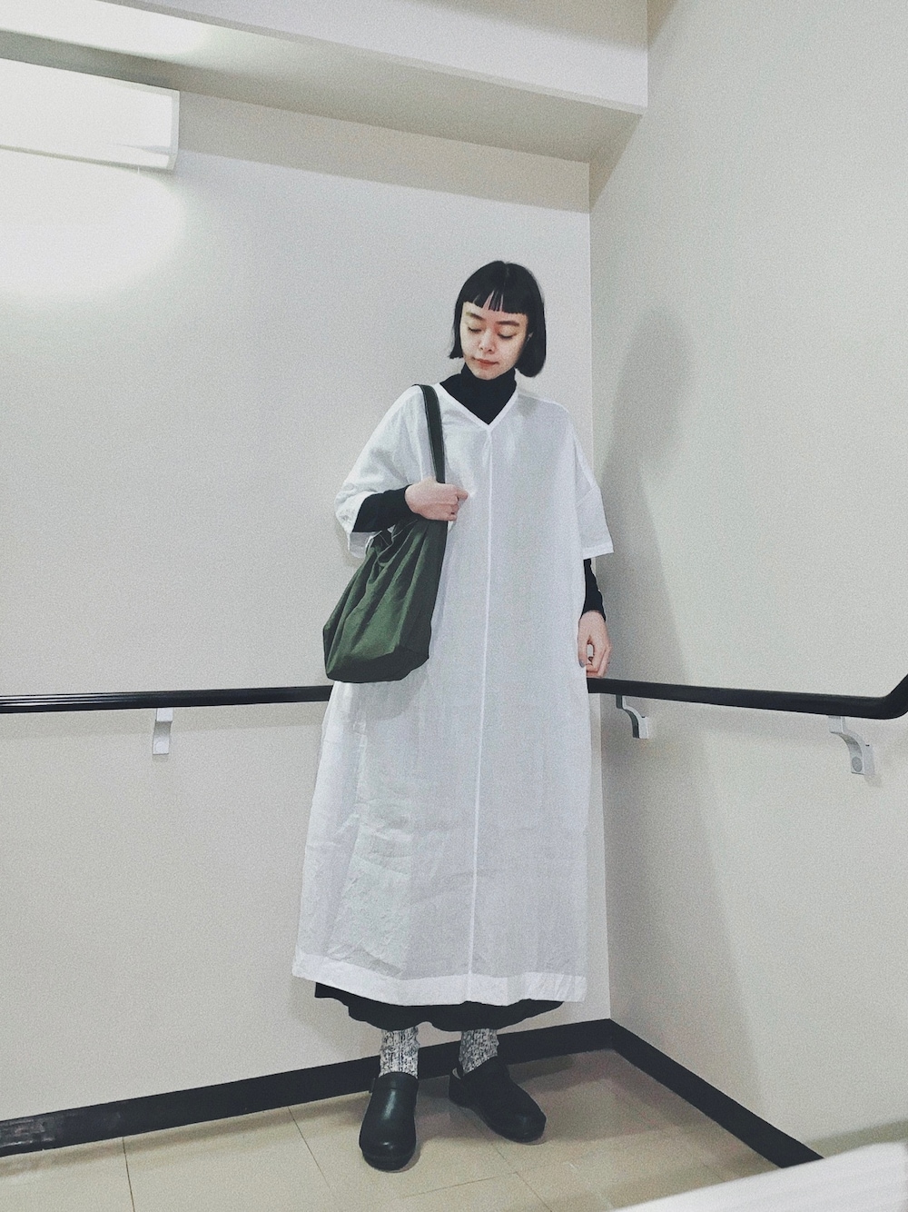 ikiさんとのコラボワンピース、 白を着てみました🐻❄️ タートルとスカートに黒を合わせると、 とっても着やすい◎◎◎ もちろんデニムやパンツも合うよね🤔✨ ぜひ渋谷PARCOさん、 PARCOオンラインをご覧ください!