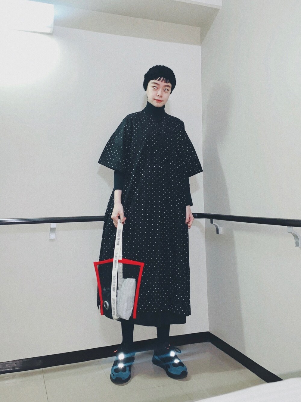 今日はikiさんとのコラボワンピースを着たよ。 カバンはadamさん×トリコテさんコラボ。 黒ドットワンピースは、 差し色も楽しめていいな〜◉