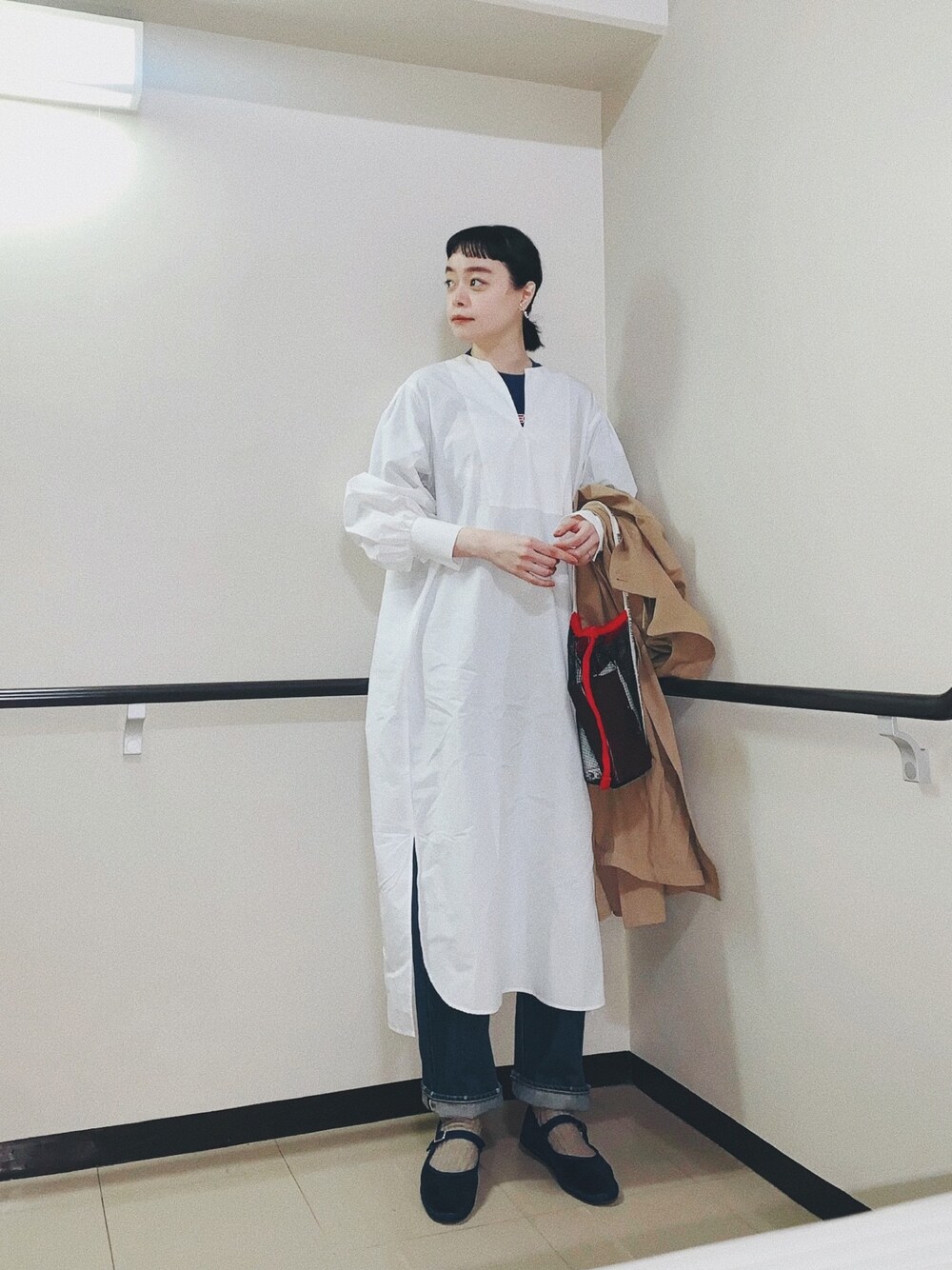 大好きなyuwワンピース。 中に古着のTシャツをインして、 カジュアルに着てみました◎ コラボのメッシュバッグも 今日はちょうどいい季節🌸