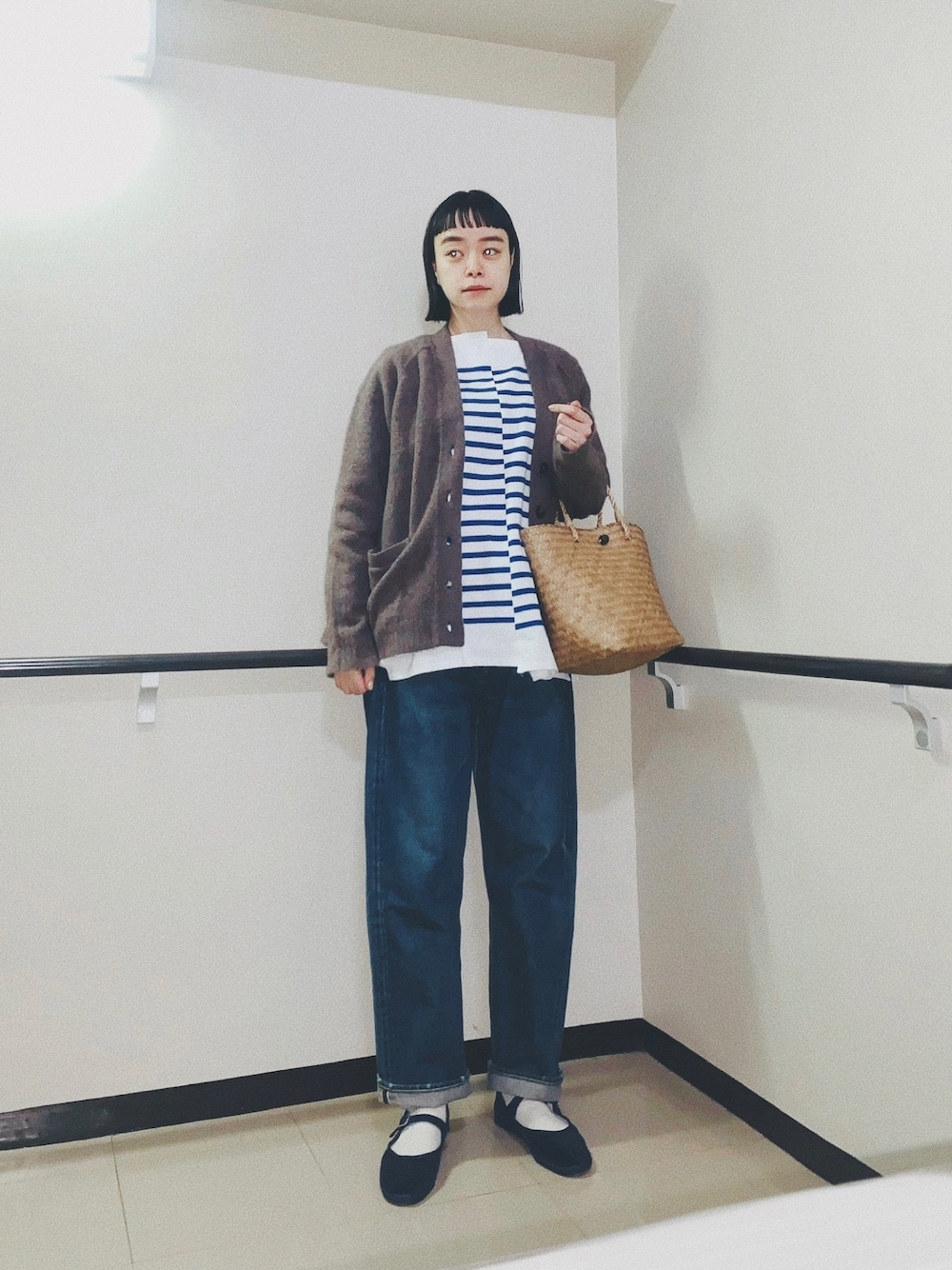 カジュアルな日。 シンプルな時は、少しクセあるものを。 ボーダートップスが可愛いんだよ。