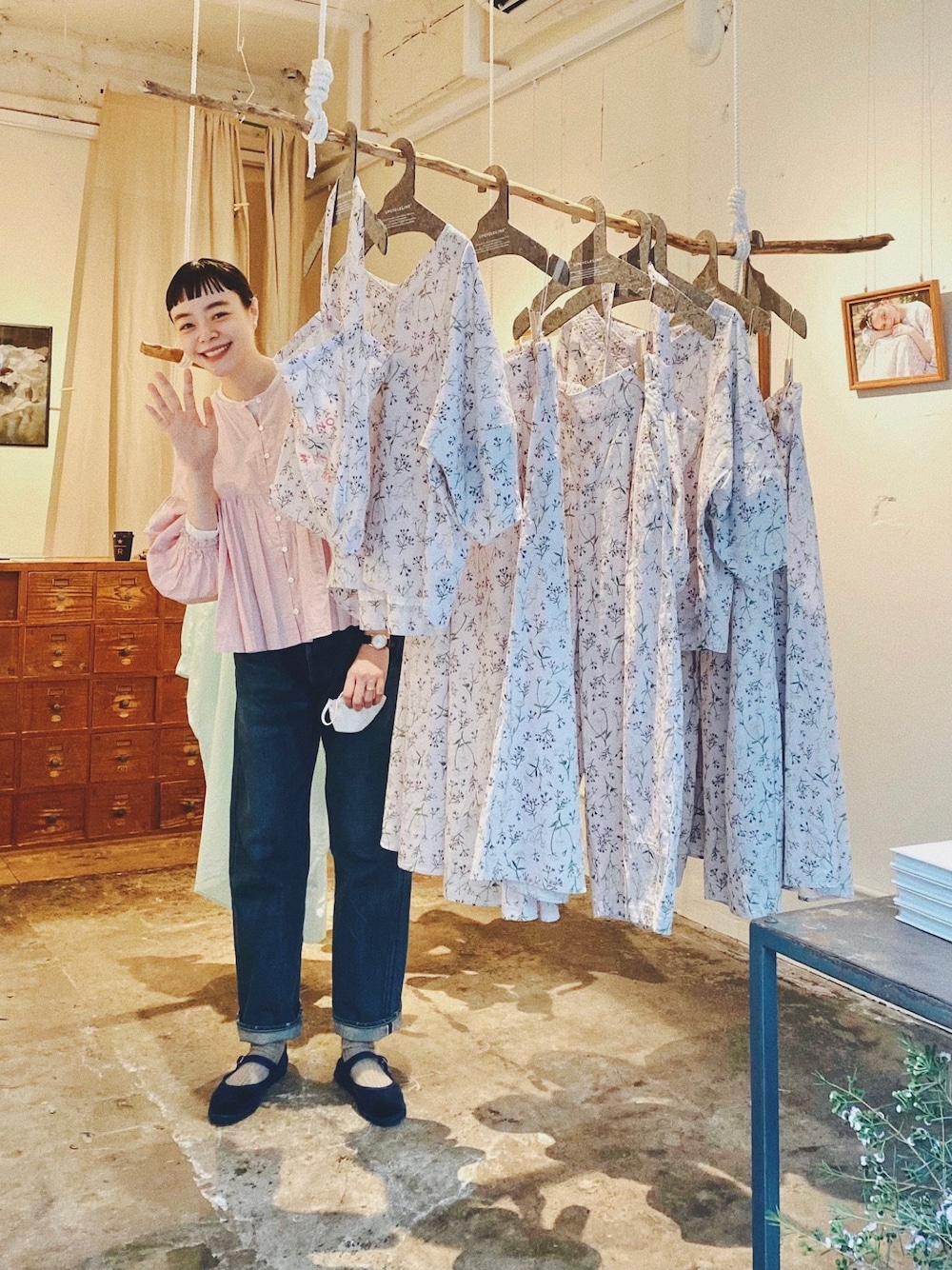 銀座の森岡書店さんで開催中の、 ネストローブ×スタイリスト轟木さんの 洋服を見てきました〜💐 轟木さんが描かれたお花の洋服、 とっても可愛いかった〜✨ 私はバッグを購入🤝 11日の日曜までだそうです🏃♂️