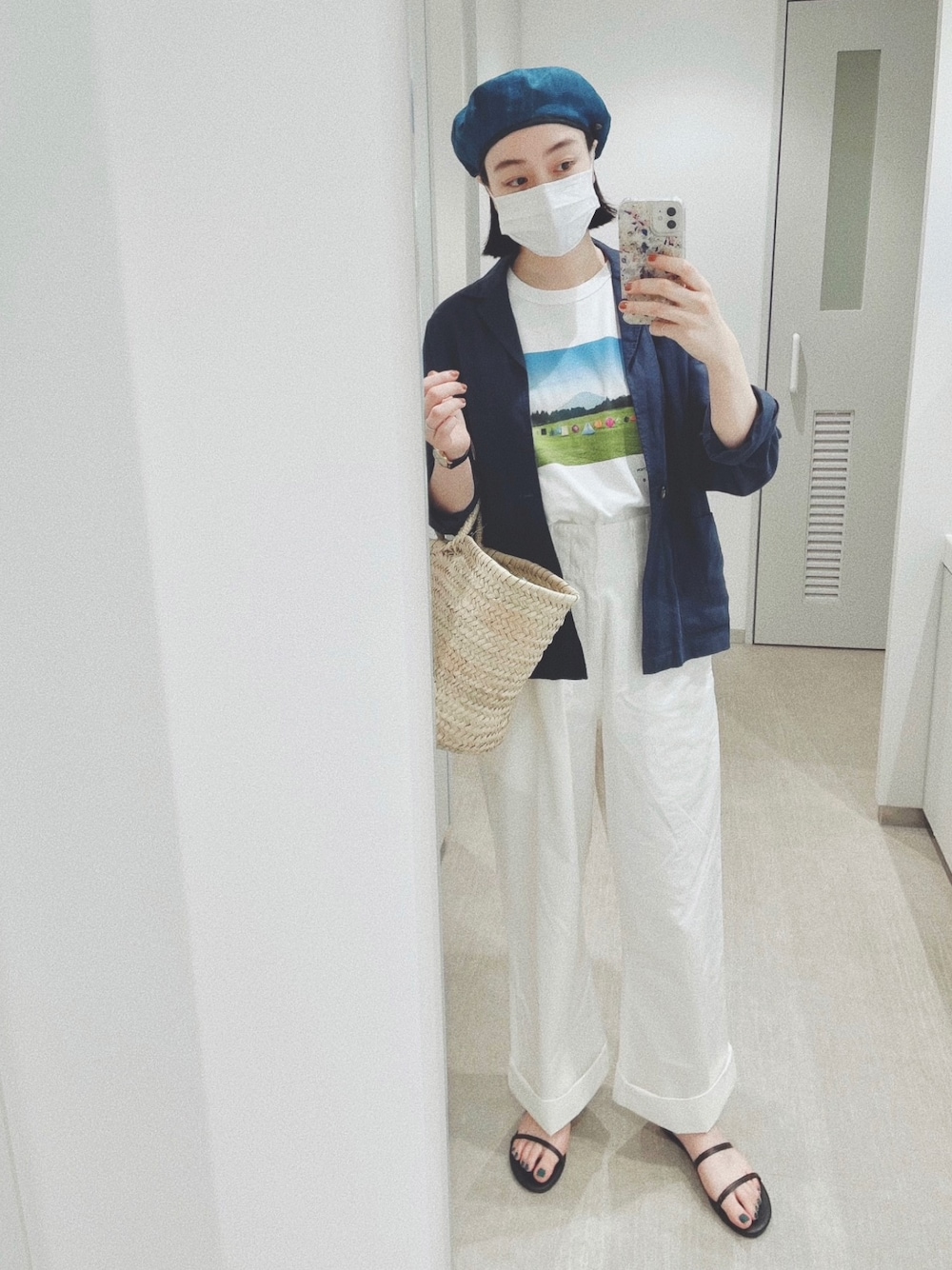 今日はアンリアレイジのTシャツに、 アンリアレイジのパンツ🙆🏻♀️ ブルートーンだったので、 ネイビーのベレー帽も合わせたよ。 実はアイラインも水色🐬