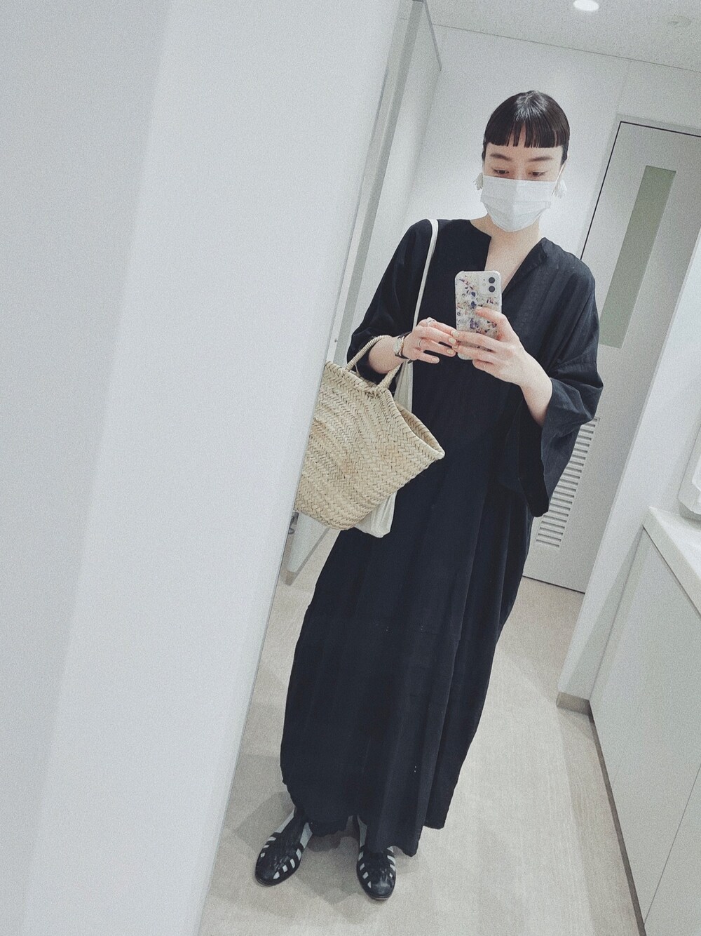 最近は毎日カゴバッグだな…🧺 結局使いやすくて手に取っちゃう。 今日も今日とて、 designsixコラボのイヤリング。 白のValoを付けてます🦢