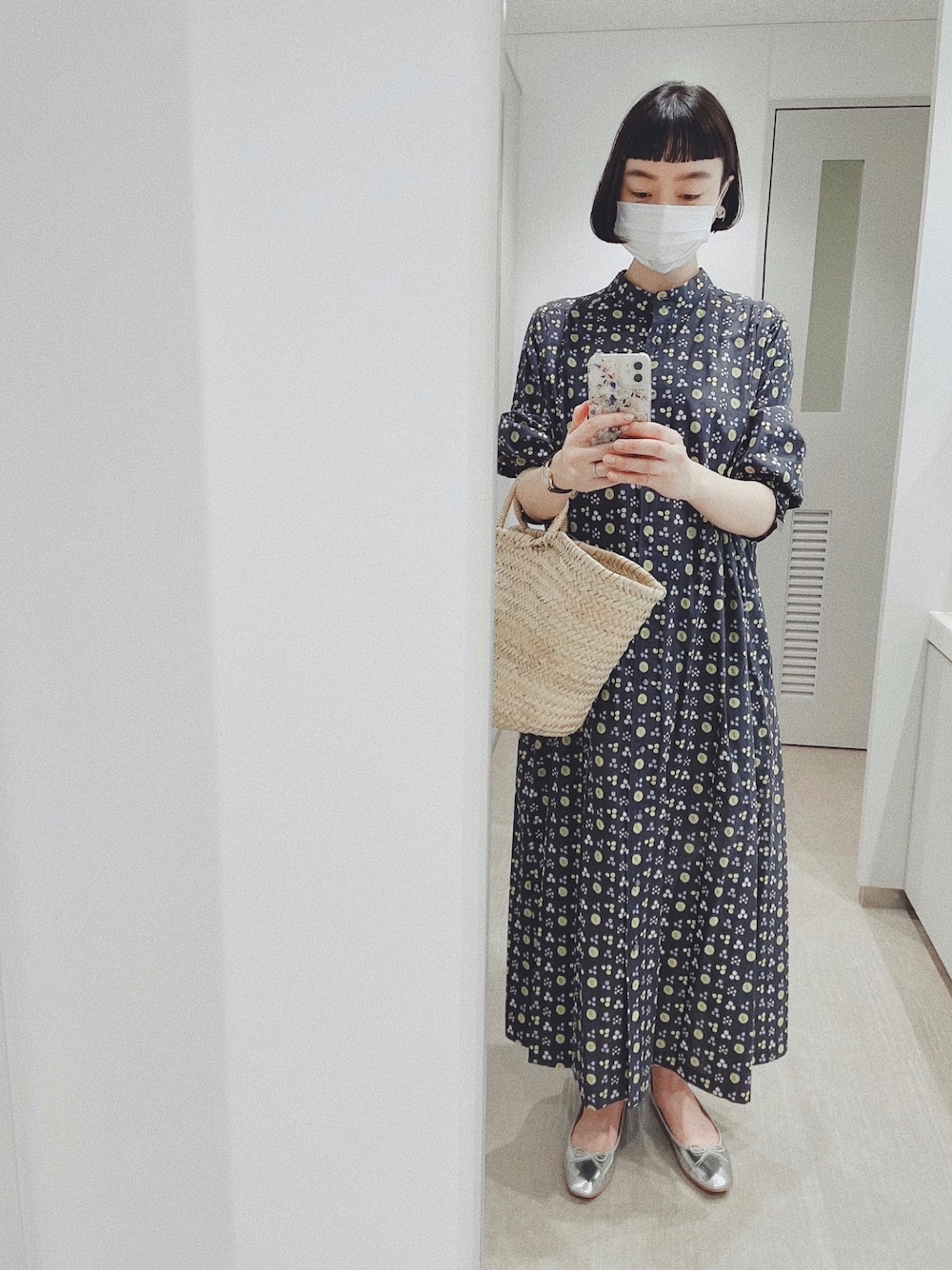コラボワンピース、 楽ちんなのでついつい頻度高めに🤝✨ ロングワンピースでも、 かごバッグとシルバーシューズ合わせれば、 涼やかに着れる気がします🎐