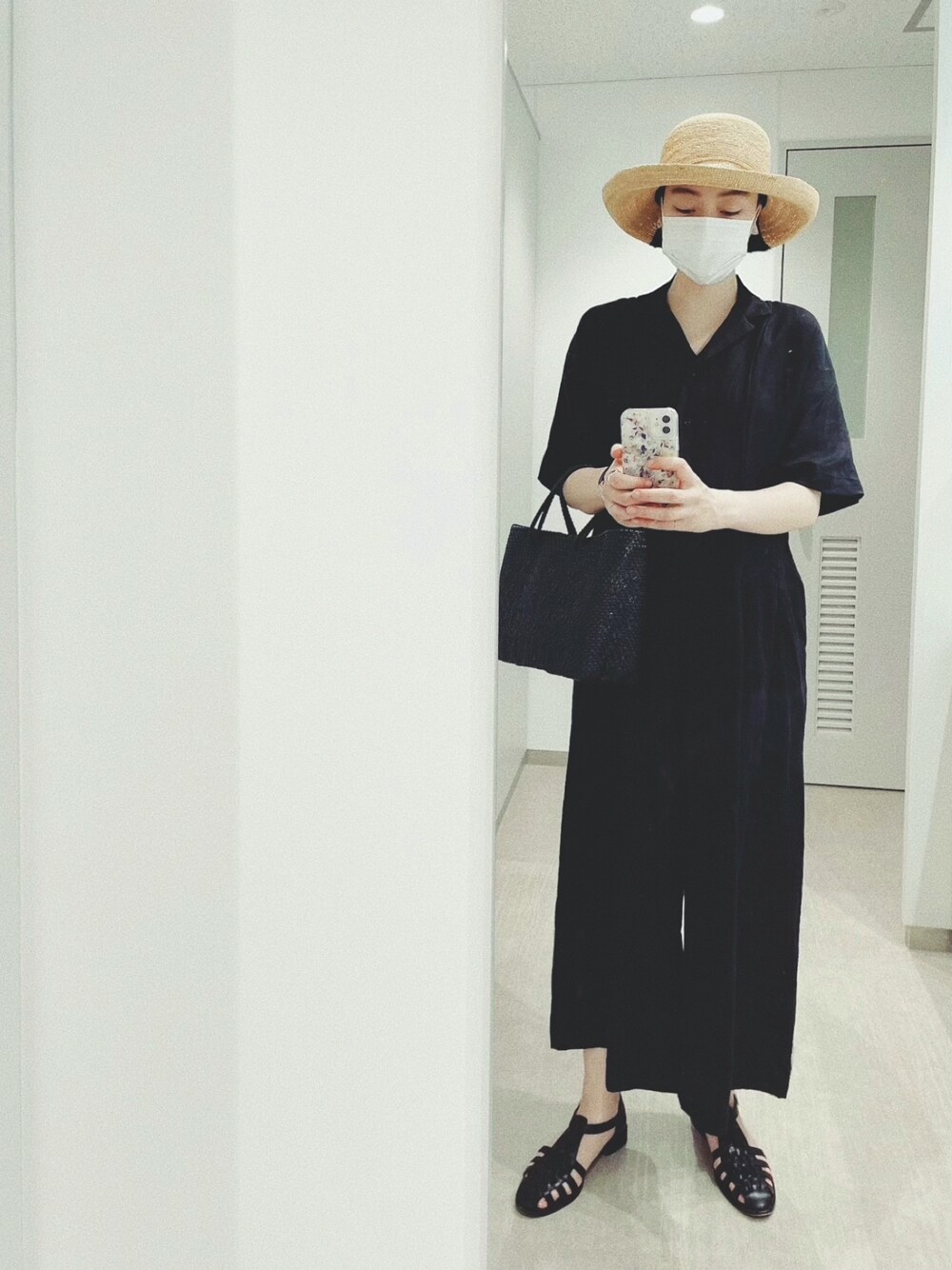 今日も黒いです🌚 サラッとかぶれる麦わらが欲しくて、 LOISIRのものをゲット👒 偶然にも今日のオールインワンもLOISIR✨