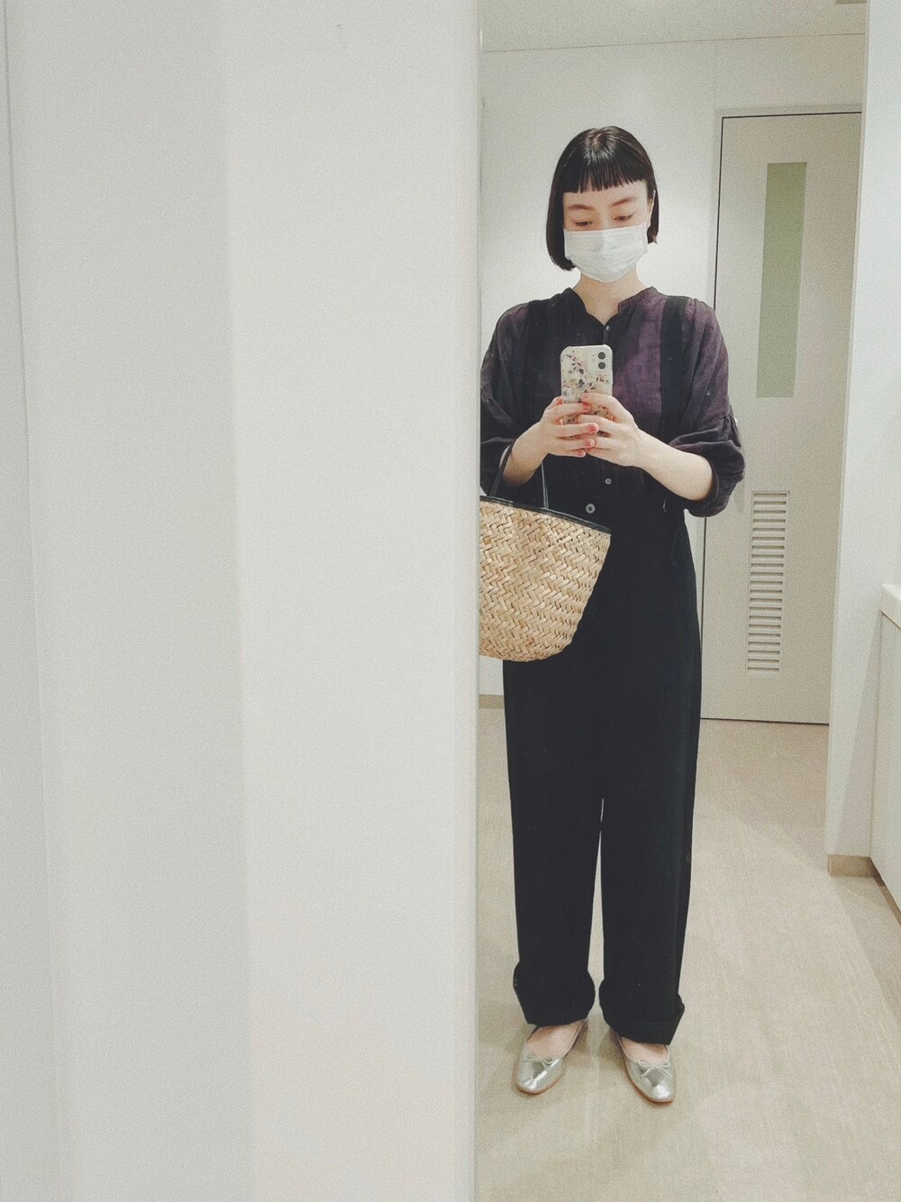 ジョンブルコラボの サスペンダーパンツ黒🌚 スズキさんのブラウスと合わせました!