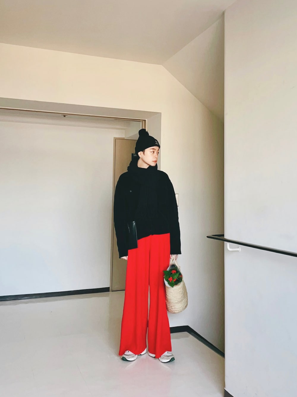 MOYSTOREの赤ニットパンツ🧶 あったかいし、 形も綺麗で最高です🤝