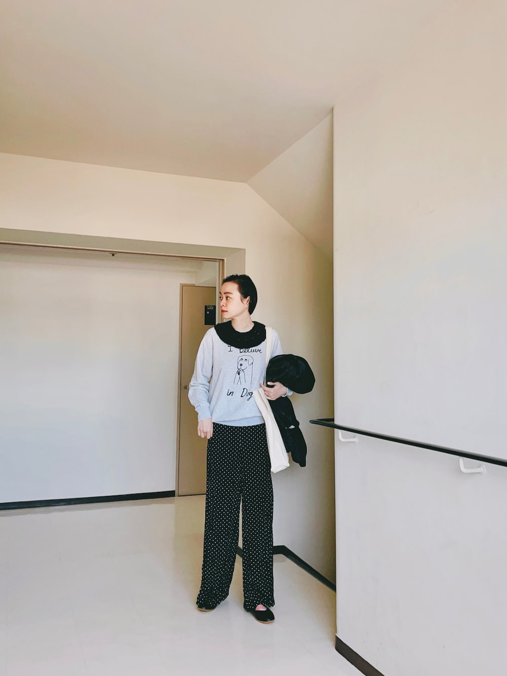 付け襟とスウェットの合わせ、 すごく好き✨ ちょっとガーリーに、 足元はピンクのソックスに、 バレエシューズ🩰