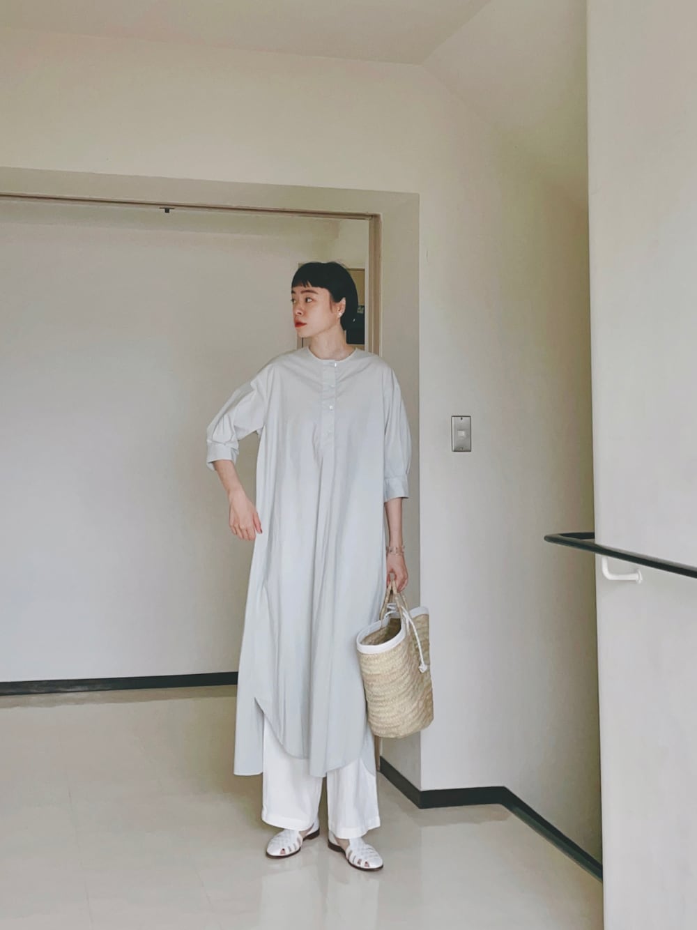 綺麗な色のワンピース。 数年前のものですが、気に入ってて、 まだまだ愛用中✨✨ 白いパンツ、小物で統一してみました🐻❄️