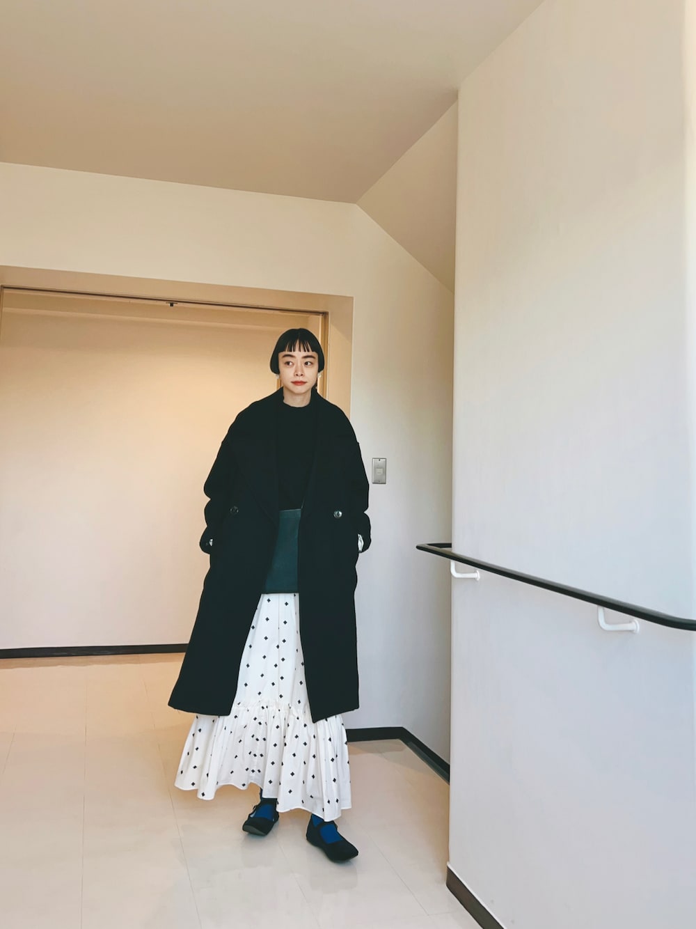 Kanocoのピーコート「ビッグラペルウールコート」を使ったコーディネート