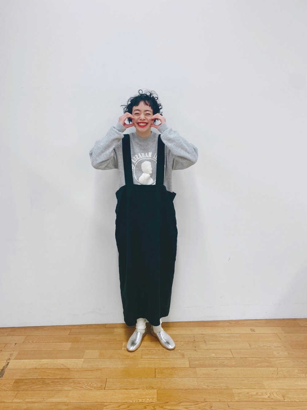 今日は撮影でクルクルヘアに。 スウェットのグレー×白を、 足元のシルバー×白で統一。
