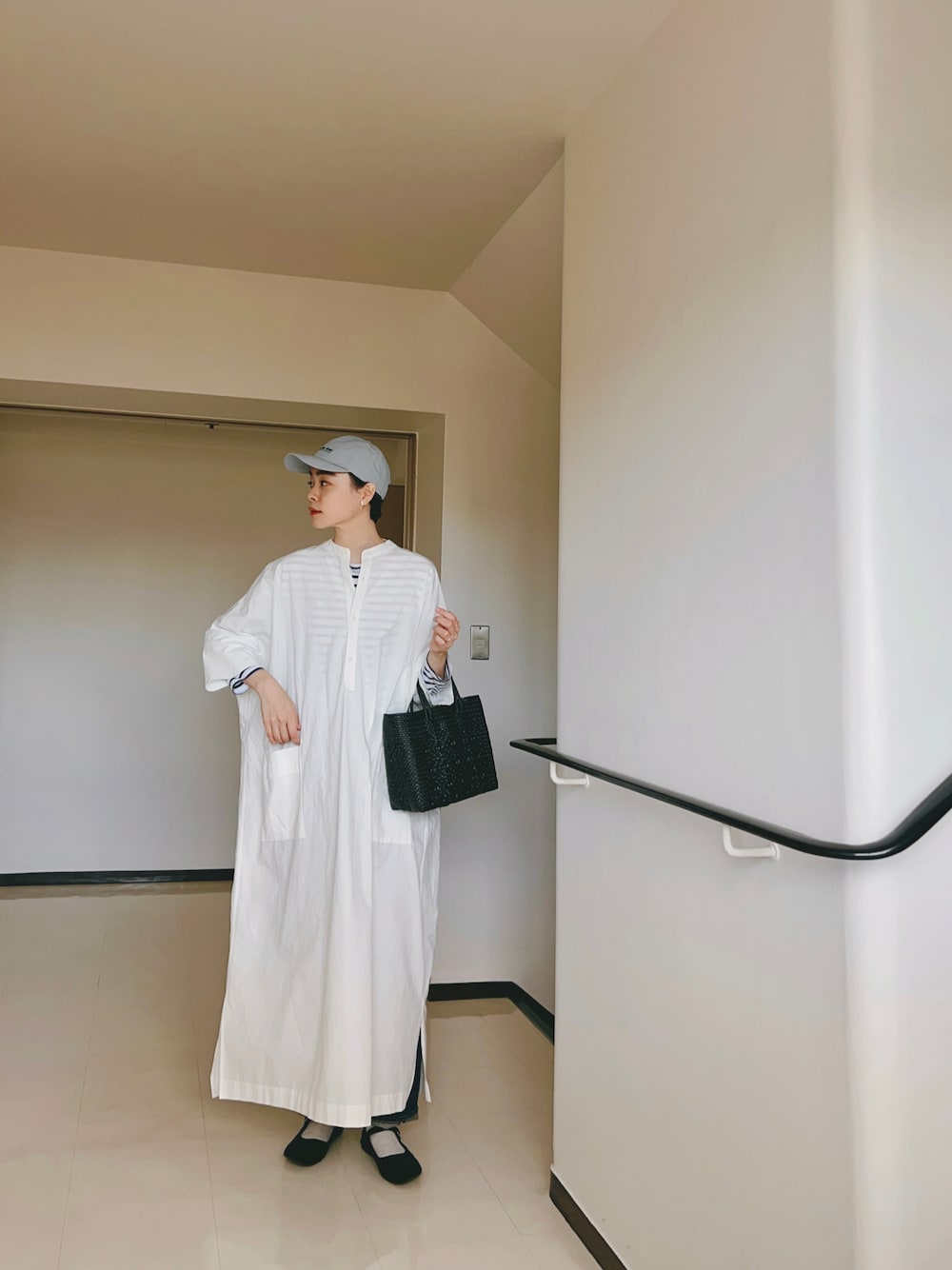 やっぱり楽ちん、コラボワンピース✨ カジュアルに、キャップ合わせ🧢