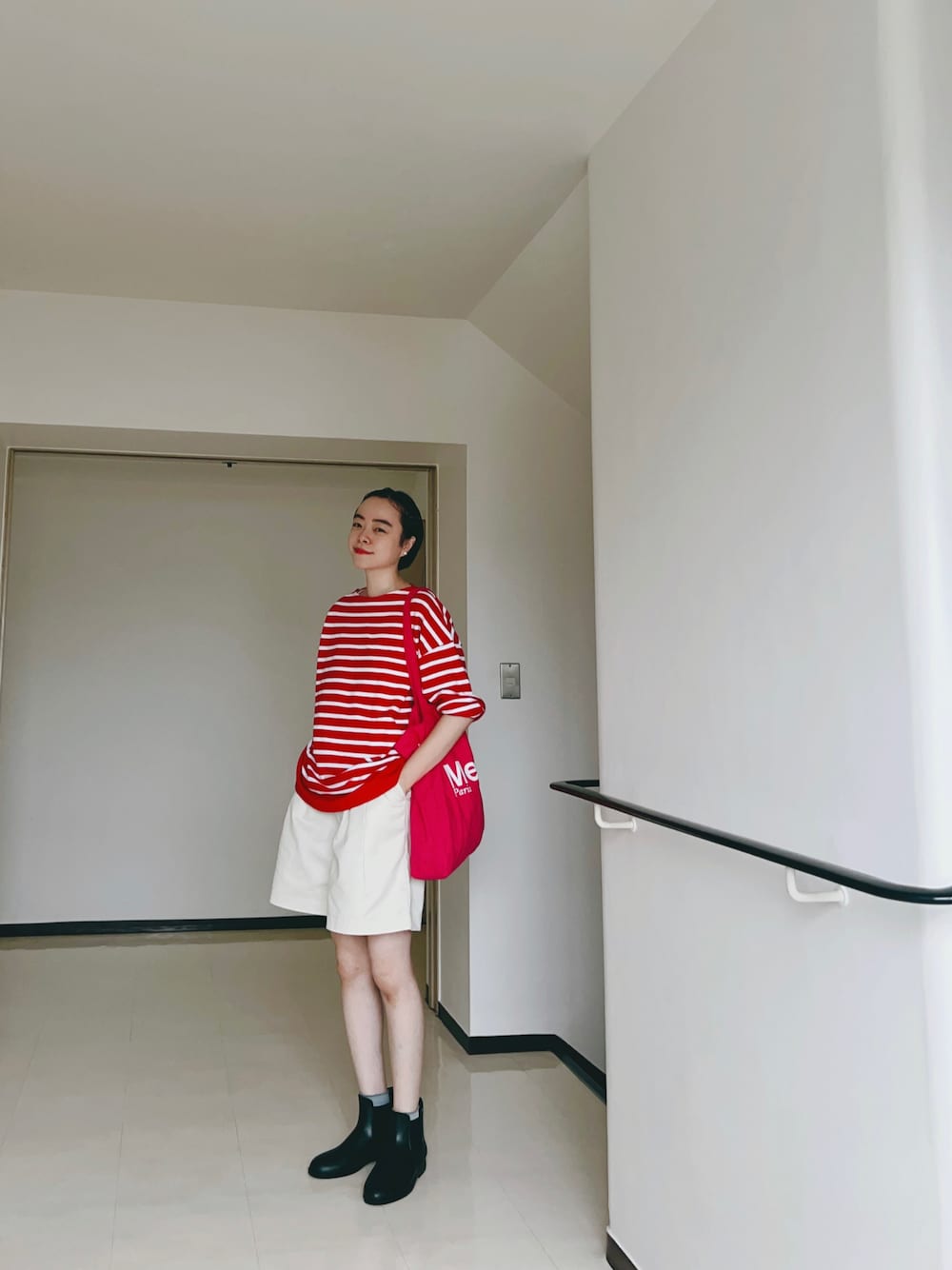 雨の日コーディネート☂️ 雨の日は、 ハーフパンツ率高め。 ボトムが濡れるのを気にしなくて良い。 Caccoのボーダーは、 ハーフパンツとの相性も良い🙆 ついに明日、6/14〜発売です!