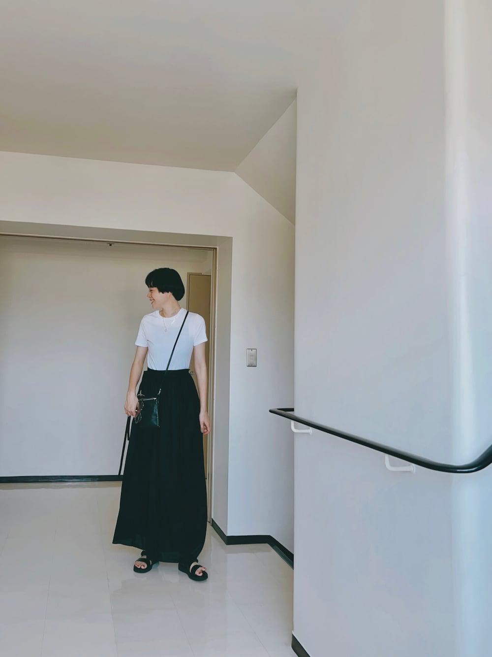 モノトーンの日。 プチバトーのTシャツ、 柔らかくて大好き。 お揃いの黒も持っています🌚