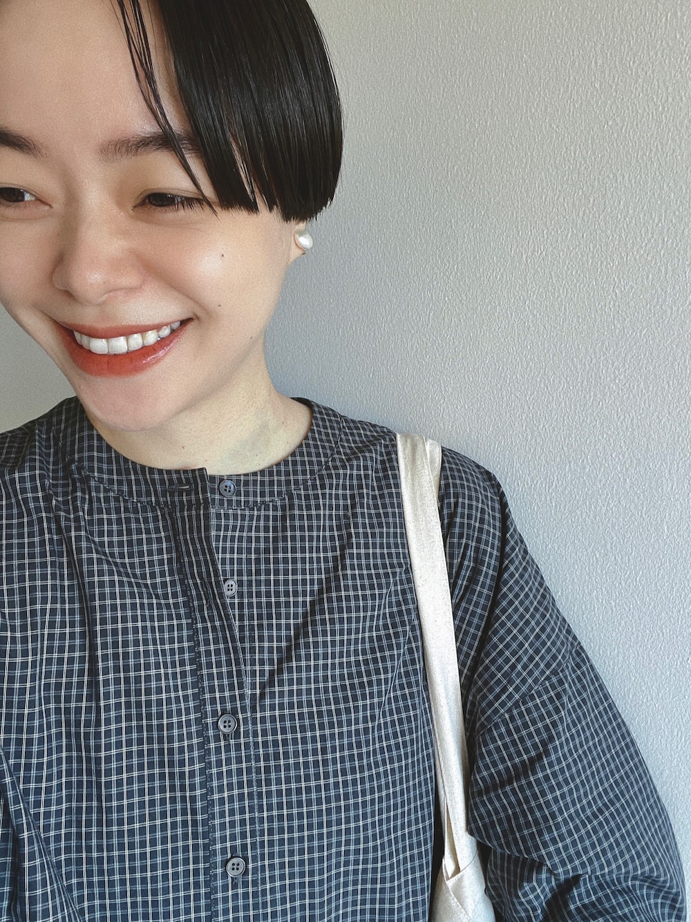 conges payes秋コラボシャツ、 黒を着ました🌚🌚🌚 メンズライクなシャツですが、 どこか上品さもあり、 パールのアクセサリーと相性良いです✨ 着方によって、 大人っぽくも着られて良いです◎