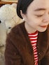 LOISIRの茶色ふわふわカーディガン🤎 赤ボーダーとよく合う♡ 可愛いなぁ✨
