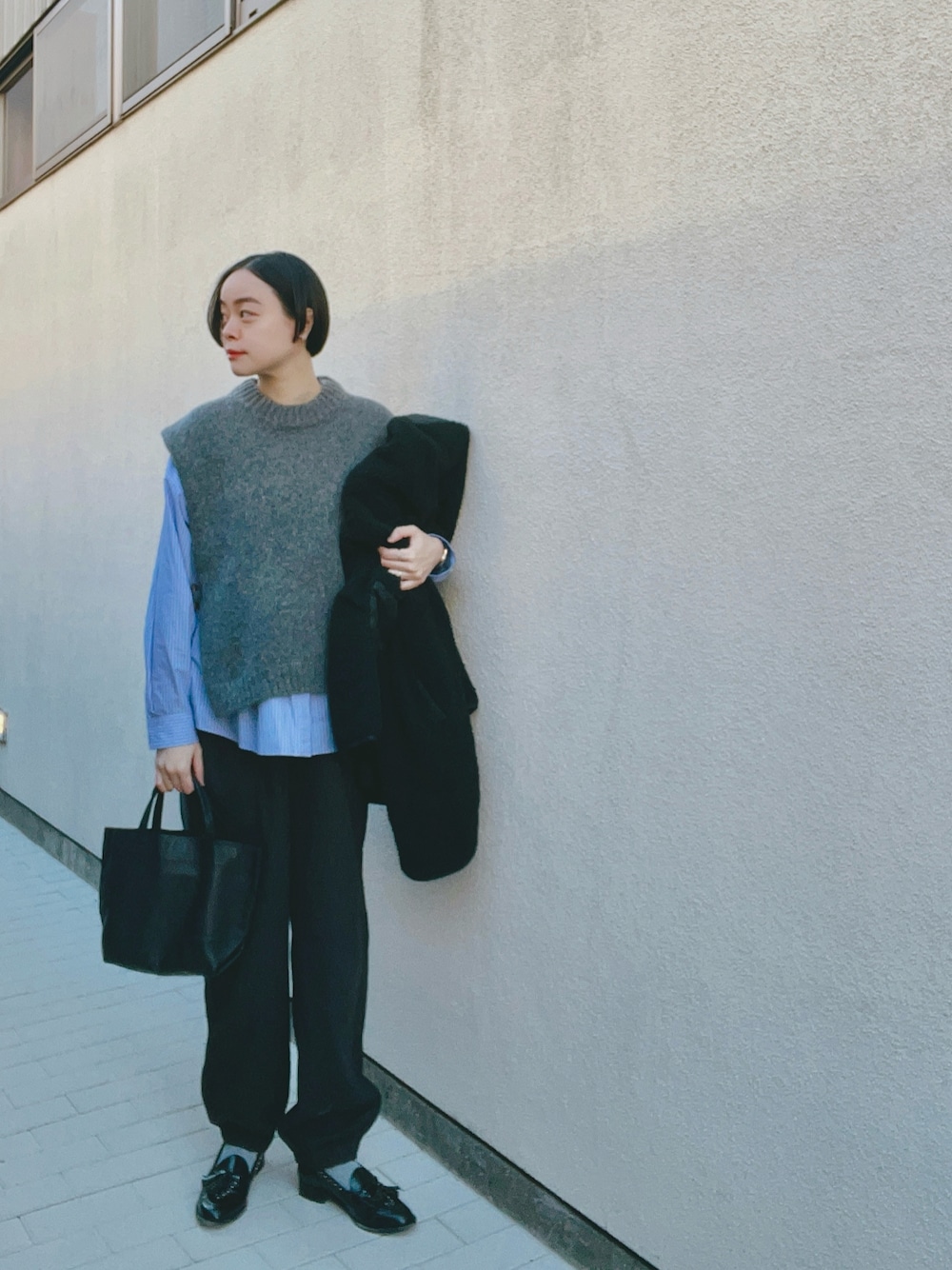 ずっとやりたかった、 コンジェコラボシャツにニットベスト! やっぱり合う〜可愛い〜✨