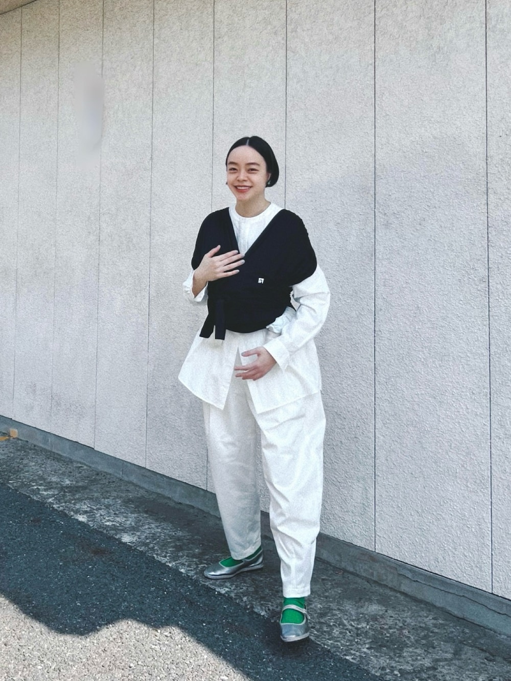 緑のソックスは案外使い勝手良いです。 作ったアイテム同士が相性良くて、 なんだか嬉しいです。 コンジェコラボのシャツは長めなので、 抱っこ紐がしやすくて重宝しそうです👶🏻