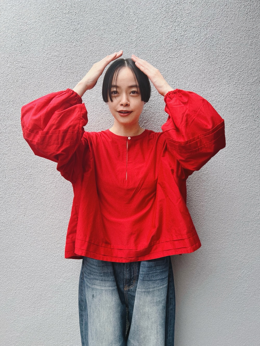 出張ヘアカットに来ていただき、 自宅で赤子を見ながらカット💇♀️ お気に入りの赤いブラウスを来て✨
