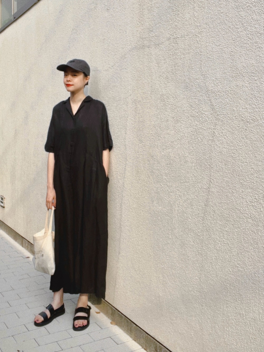 LOISIRの猫キャップ🐈⬛ 黒いオールインワンに合わせて🧢
