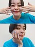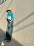 たまたまメイクさんに塗ってもらっていた ネイルの水色がTシャツとピッタリ🩵 デニムは臨月まで履いてたもので、 ギュッと絞った時のサイズ感が好きなので 産後の今もずっと履いてます👖