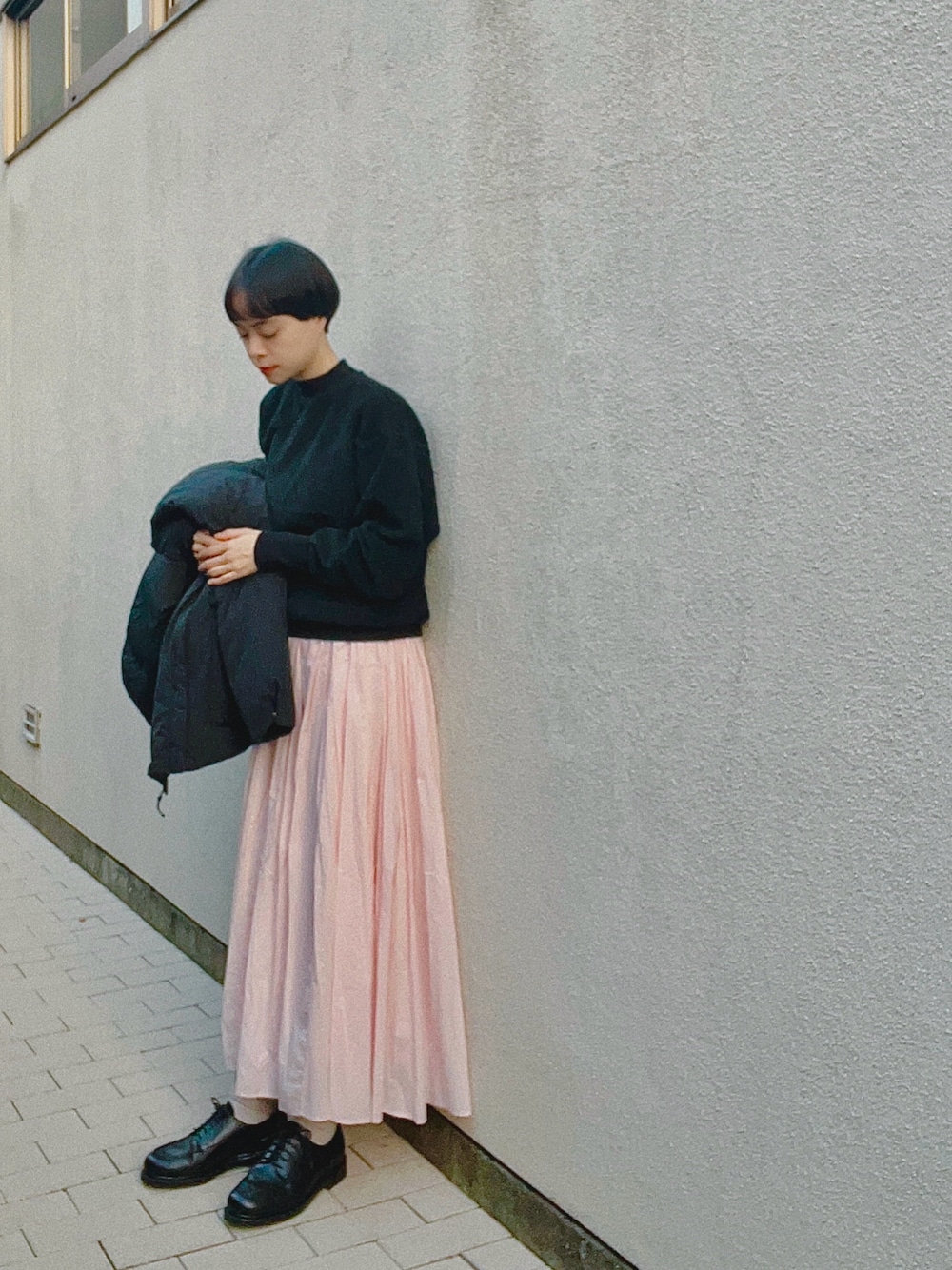 甘いピンクのスカートも 黒と合わせれば甘過ぎず着やすいです。 このトップスは去年、妊娠中に買いましたが、 お腹がキツくてほぼ着られずだったので、 今年ようやく着れるようになり嬉しい。