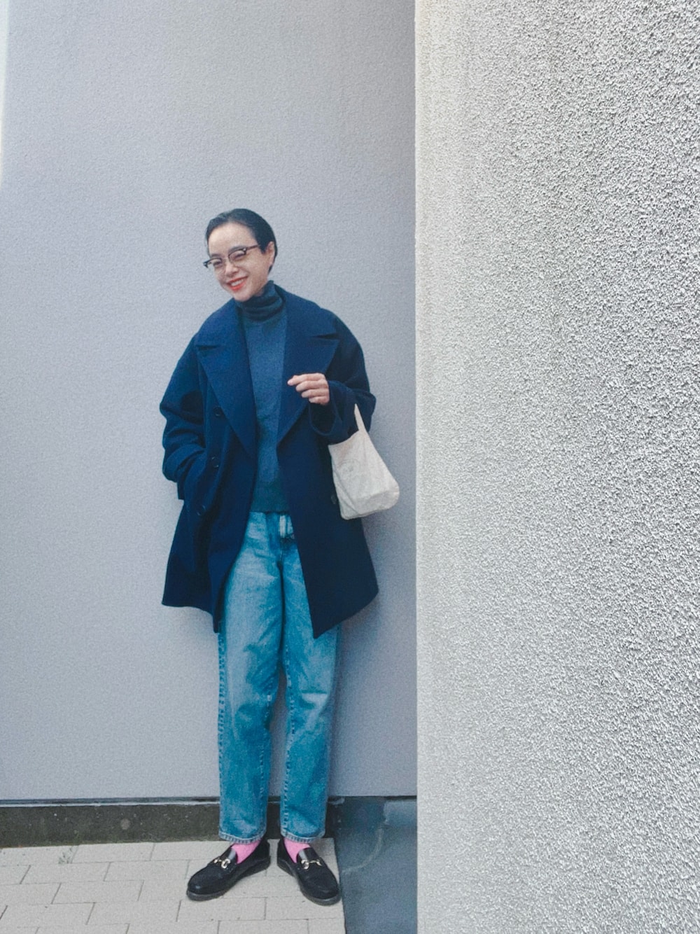 やっぱりネイビーが大好き。 アクセントにピンクの靴下♡ 靴下には実はhelloの文字が♡