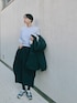 Caccoのシンプルスウェットに、 デザイン性のあるスカートを合わせました。 スニーカーでもう一癖👟