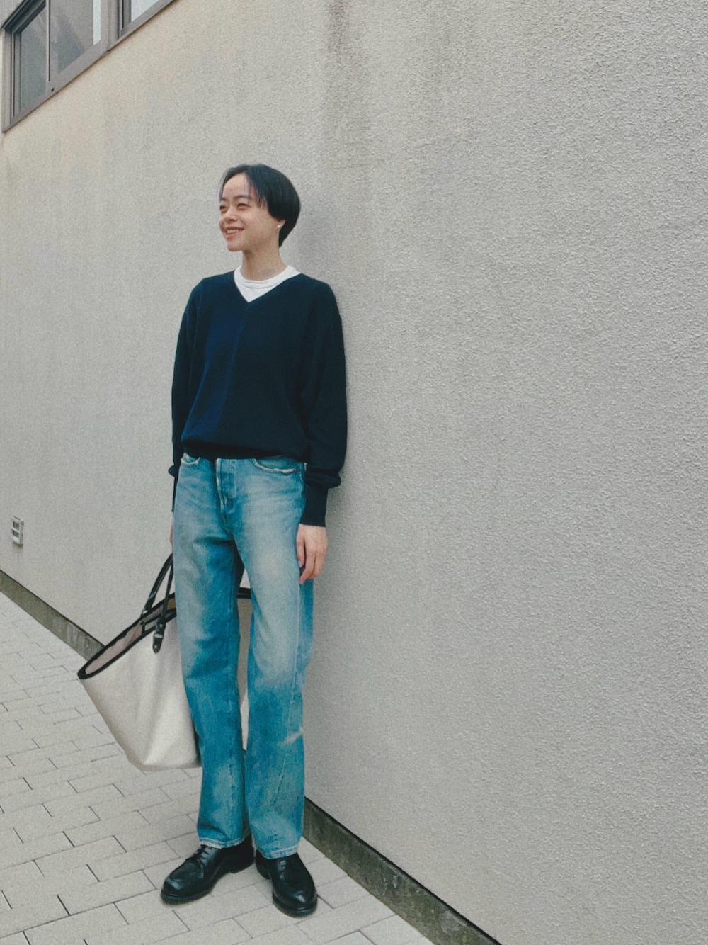 ブルートーンのベーシックな日。 リンネルの撮影で着た、 shinzoneのネイビートップス、 最高すぎたので、即ゲット👍 同じくshinzoneの白Tを入れて着ました。