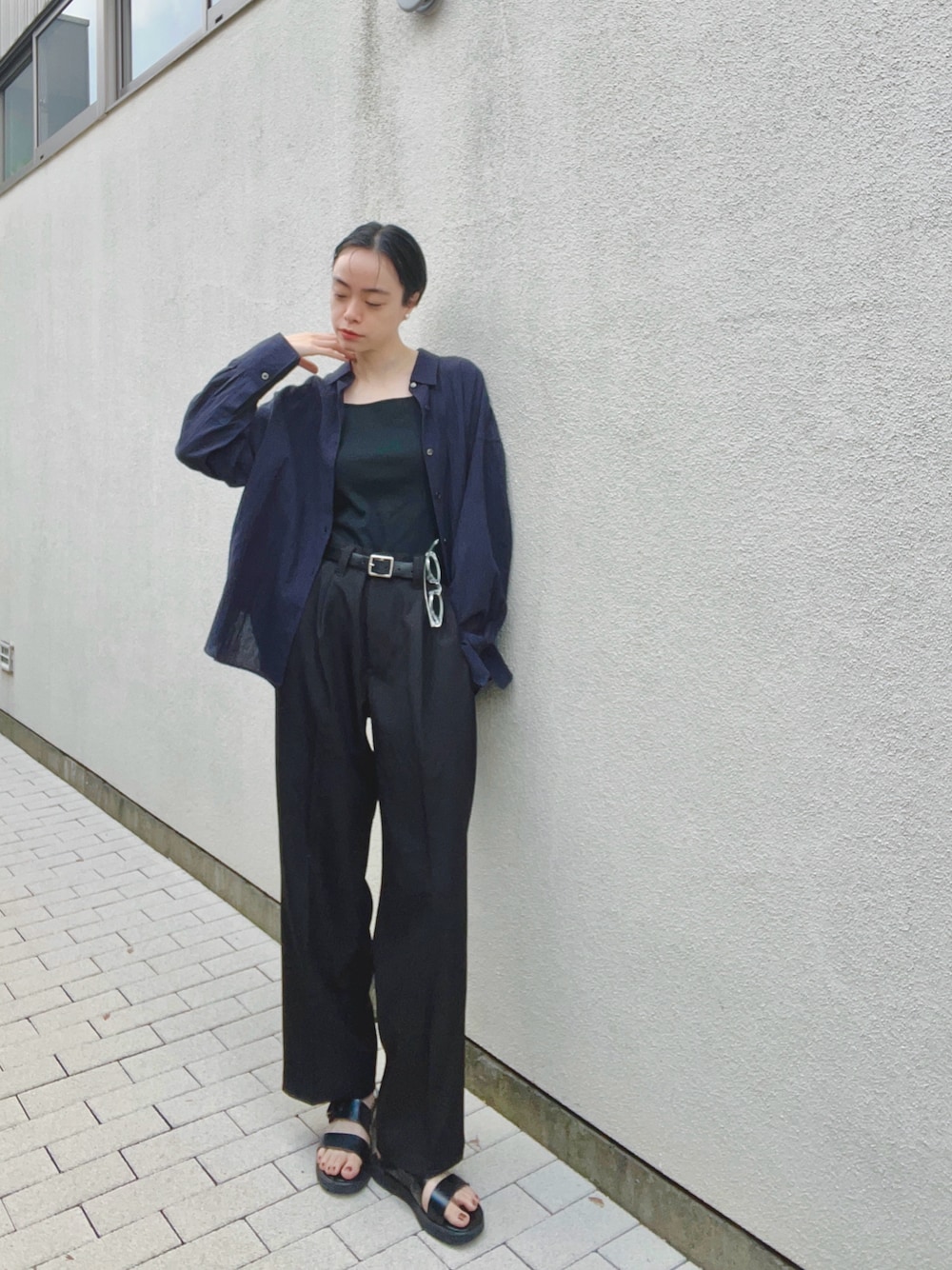 ネイビーシャツ。 黒でまとめるとシックで、 大人っぽくて良いです◎ ほぼ日さんより発売中です🙋🏻♀️