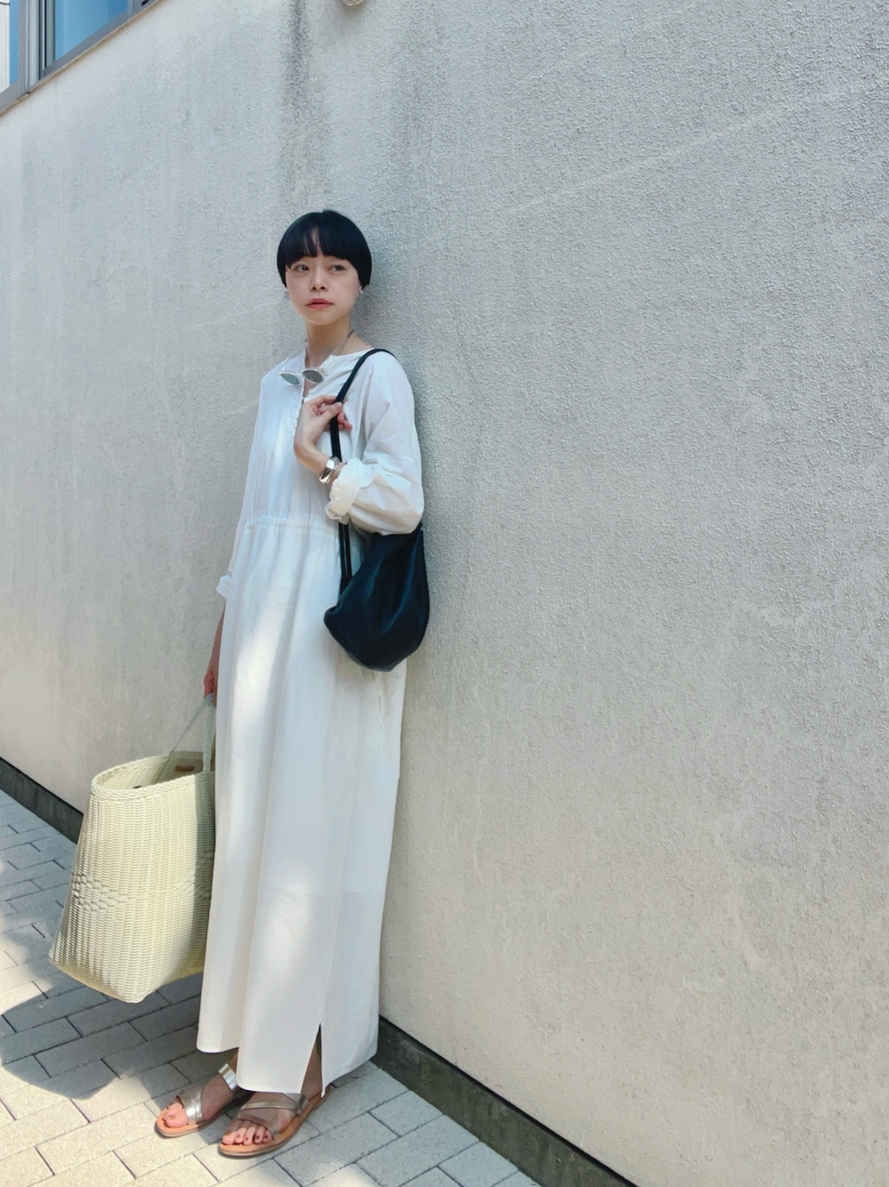 ほぼ日さんで発売中の Caccoワンピース。 やっぱり真っ白のワンピースは、 いつ着てもクリーンな印象✨ 170cmの私でもこの丈感。 こんな長めで作らせていただけて、 本当に幸せです🥹