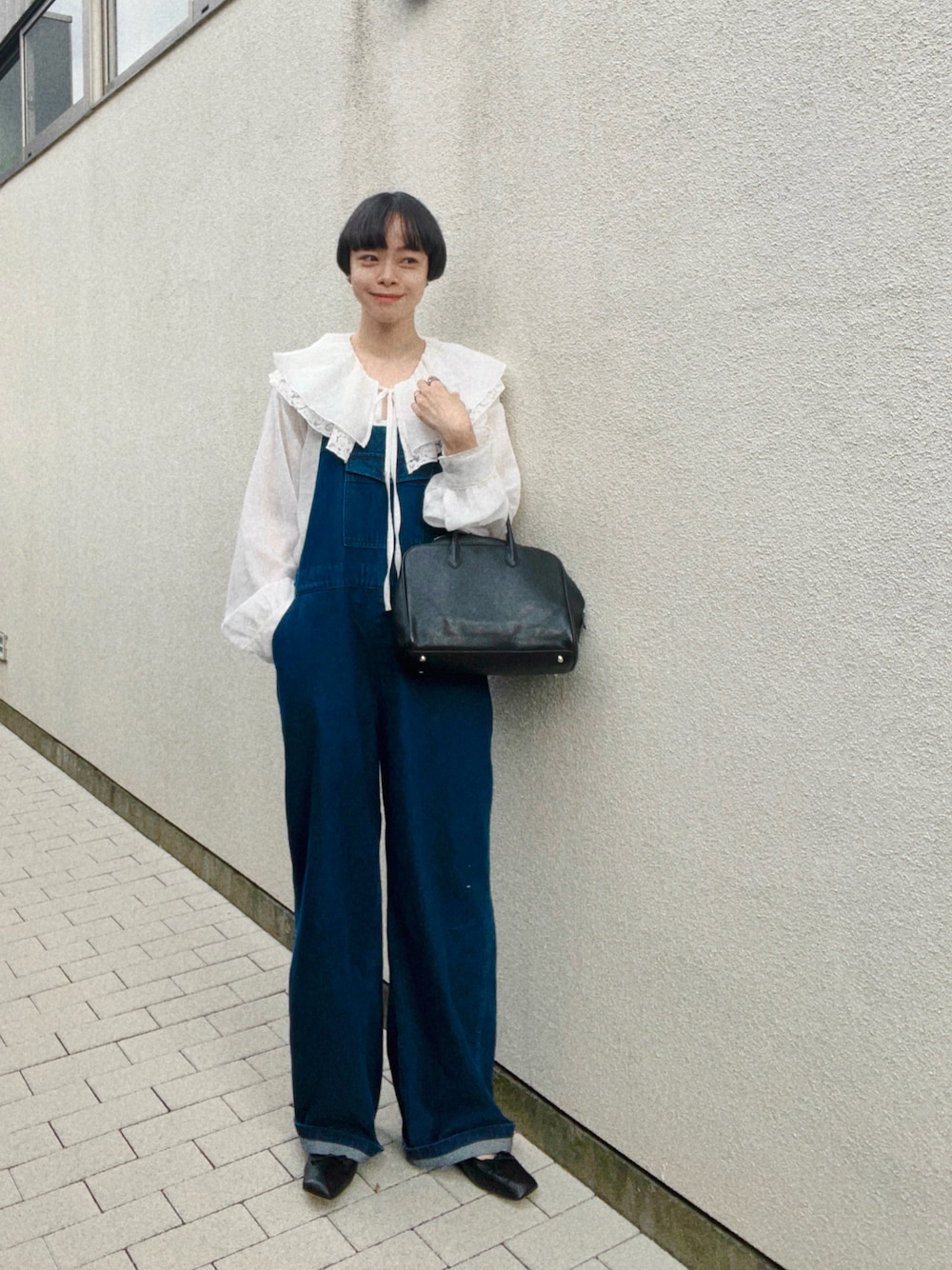 白ブラウスです。 すっごく涼やかで、 でも長袖なので今の季節に最高です👏 何年経ってもジョンブルコラボの サロペットが優秀過ぎてやめられません。 コラボさせていただいた アイテム同士が相性が良いと、 とても嬉しくなります🥹❤️🔥