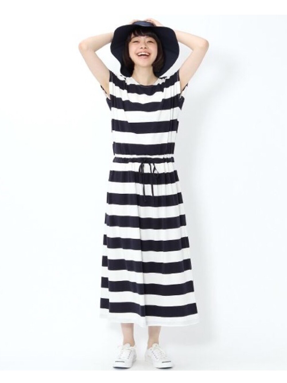 このワンピース、 長さもあって良い。 太めのボーダーは 元気に見えますな。 夏に良いです。