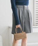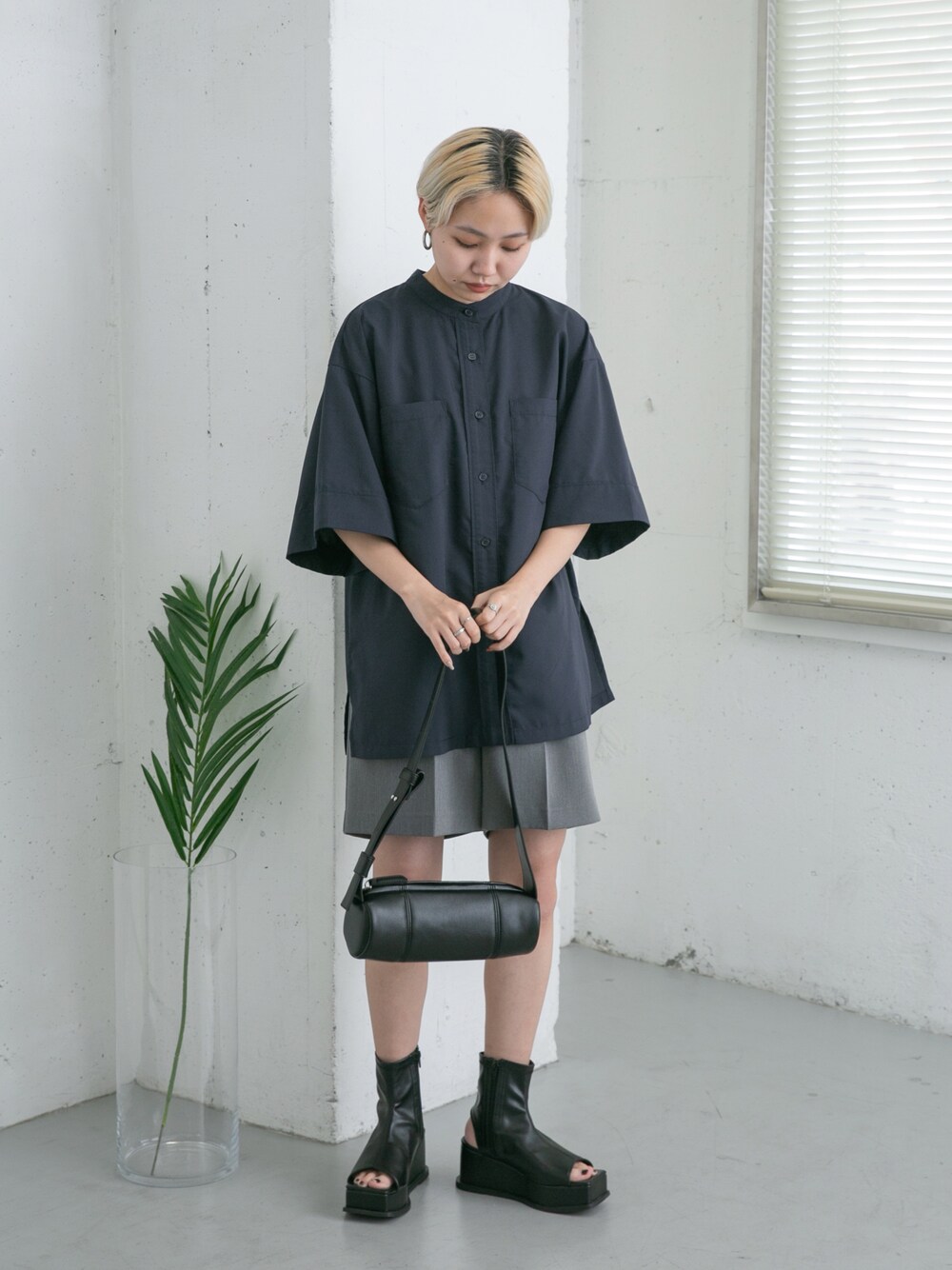 一見ベーシックなシャツですが、背中のギャザーで変化を付けたおすすめの1着。 ショートパンツを合わせて今年らしいスタイリングに。 小物を黒で統一し、シャープな印象に仕上げているのもポイントです!