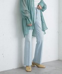 トレンドアイテムのビスチェにボリューム袖のTシャツを合わせた今年らしいスタイル。 細身のフレアデニムを合わせてバランスを取りました◎