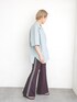 ナイロン混のシャツにトラックパンツを合わせたスポーティなコーディネート。 足元はビーチサンダルを選んで抜け感をプラス。 パンツはフレアシルエット×サイドラインで脚長効果抜群です!