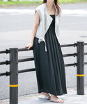 デイリーユースにおすすめのカップ付きワンピース。 2サイズ展開なので幅広い方にお楽しみいただけます! ベストを羽織ってマニッシュな印象に。