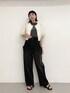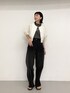 カットソー×デニムのカジュアルなスタイリングに ジャガードのブラウスを羽織って大人っぽさをプラス◎ 夏のモノトーンコーデ、おすすめです!