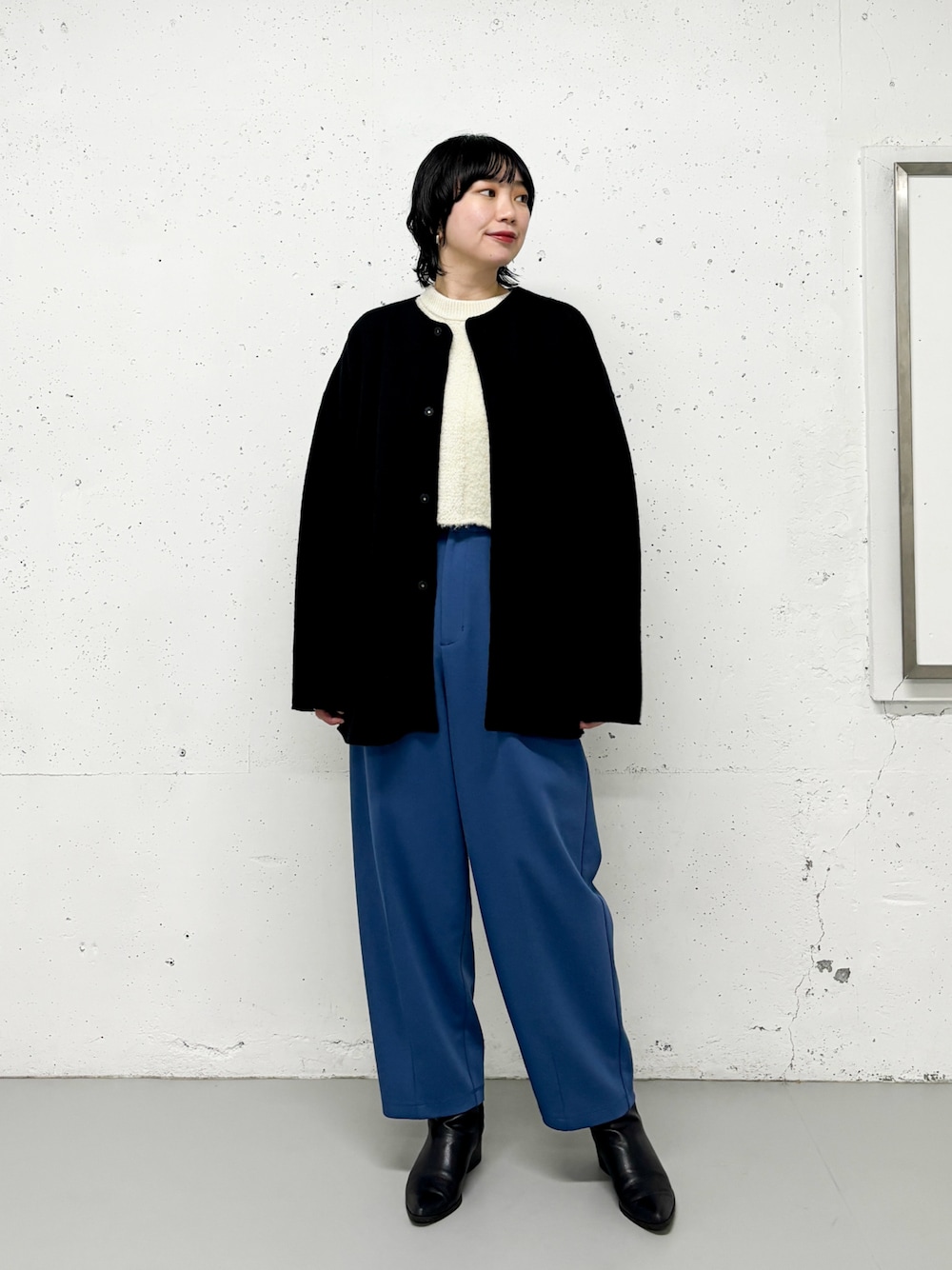 気になる腰回りをカバーしつつ 自転車も乗りやすい(⇦重要)ショート丈アウター。 軽くて暖かい圧縮ウールを使用しています。 ニットの上からも羽織りやすいシルエットが◎ カラーパンツを合わせてコーディネートのポイントに。