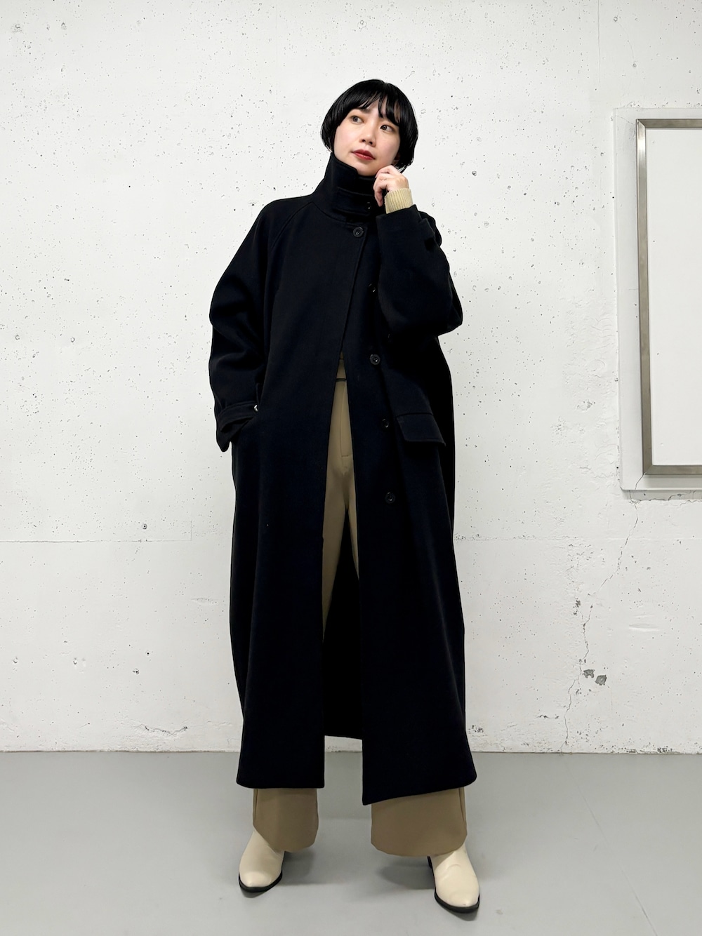 KBF OFFICIAL ACCOUNT(アーバンリサーチ)のステンカラーコート「コクーンロングコート」を使ったコーディネート