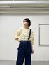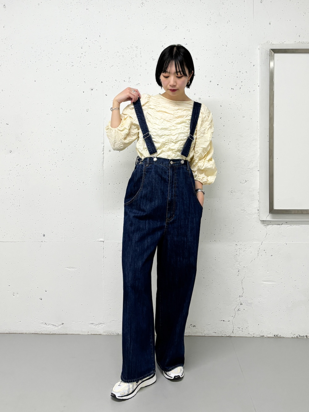 前後2WAY仕様のブラウスに 予約時から人気のサロペットを合わせてみました。 このサロペット、パンツ自体の長さがしっかりあるうえにアジャスターでの長さ調節も可能なので高身長さんにおすすめです! ブラウスは、リボンが付いているほうを背中側にしてバックスタイルも抜かりなく◎