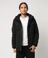 ミニマルデザインのマウンテンパーカー型ダウンブルゾンをゆとり感あるサイジングで着用。