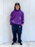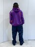 パープル系のパーカーを着用したメンズの秋コーディネートの2枚目の写真