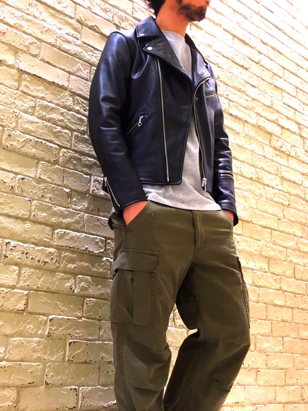K.ODA(HYSTERIC GLAMOURアミュプラザ博多店)のライダースジャケット「キップレザーダブルライダースジャケット」を使ったコーディネート