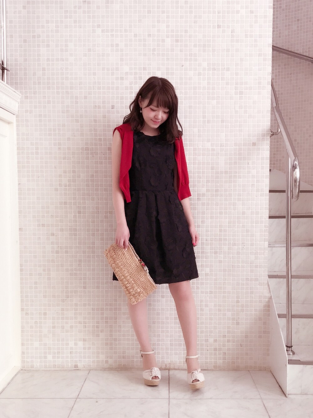 赤×カゴクラッチの夏コーデ♡