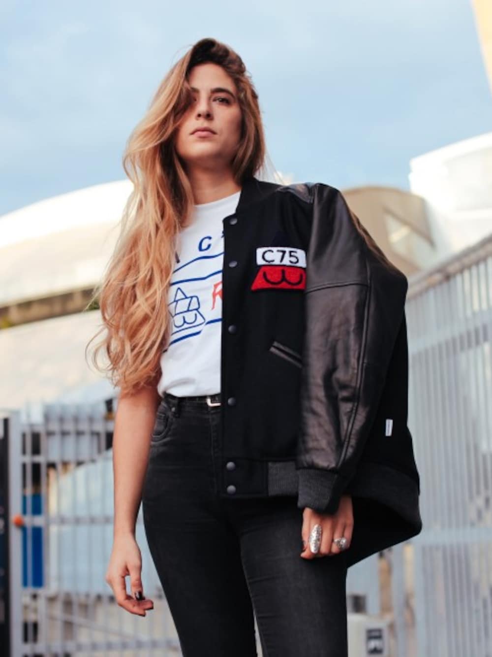 LIFULMINIMALGARMENTS.のスタジャン「CLUB 75 FOR LIFUL SHEEP LEATHER STADIUM JACKET」を使ったコーディネート