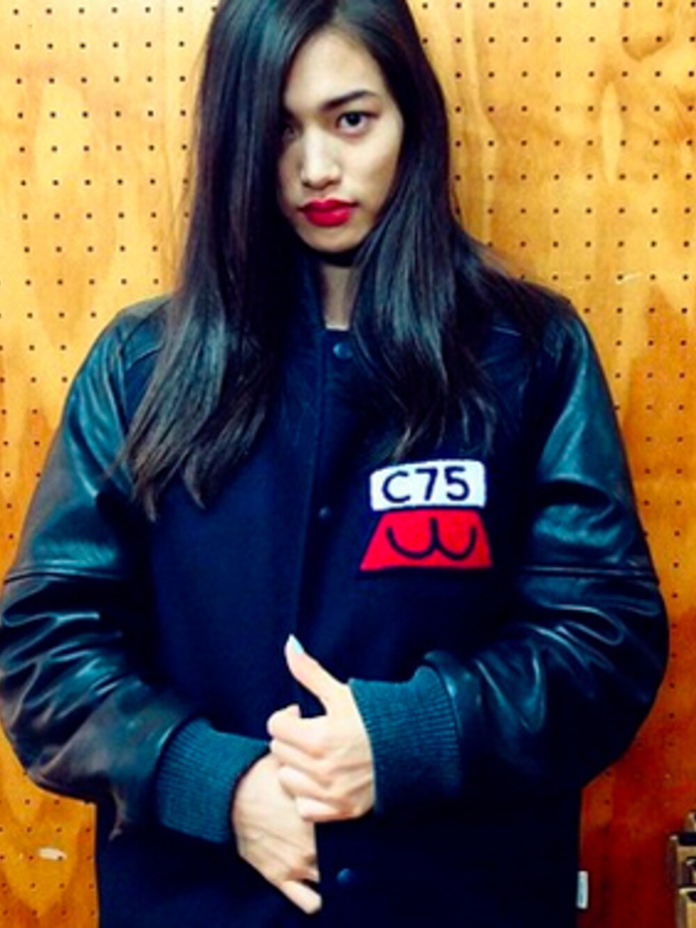 LIFULMINIMALGARMENTS.のスタジャン「CLUB 75 FOR LIFUL SHEEP LEATHER STADIUM JACKET」を使ったコーディネート
